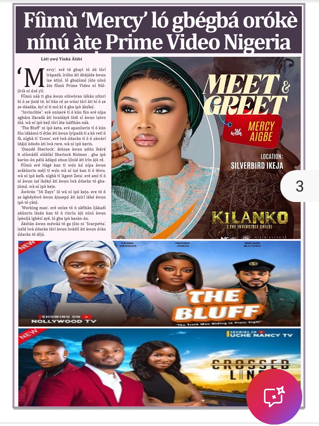 Fíìmù ‘Mercy’ ló gbégbá orókè nínú àtẹ Prime Video Nigeria